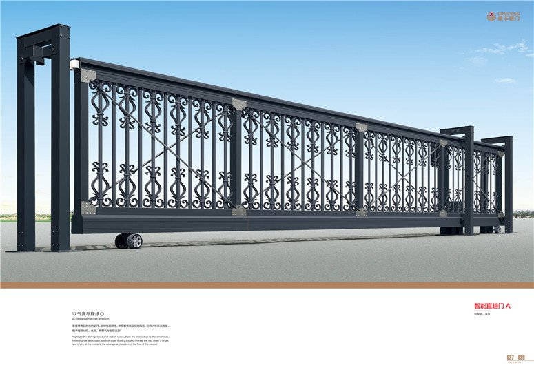 门体主框采用粗壮合金铝型材制造,承重力强,不易变形,支撑门体的立柱为超大型合金铝制成。有很好的支撑力,抗风及抗推撞力强,每立柱由双轴四轮或单轴两轮承托,门体运行平稳